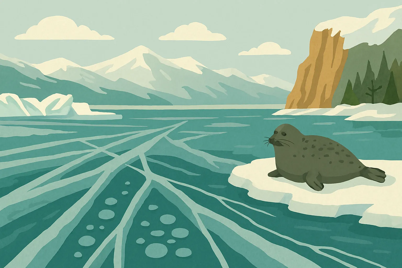 En invierno, la visibilidad alcanza los 40 metros y el hielo suele durar de enero a mayo, con un espesor de entre 70 y 120 cm (más de 150 cm en inviernos muy duros). Grietas de kilómetros de longitud «cantan», liberando tensión y formando impresionantes crestas de hielo.